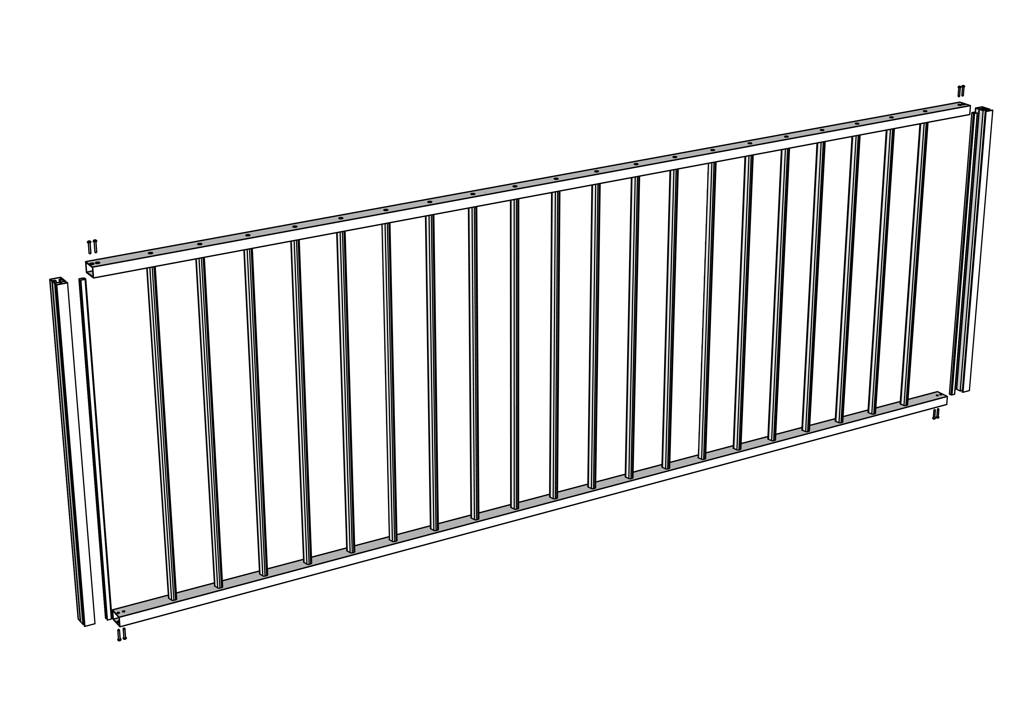 Crossbar Systems This railing consists of an aluminium frame in which vertical aluminium crossbars are fitted. There is a choice of two types of crossbars, which can be combined with panelling.