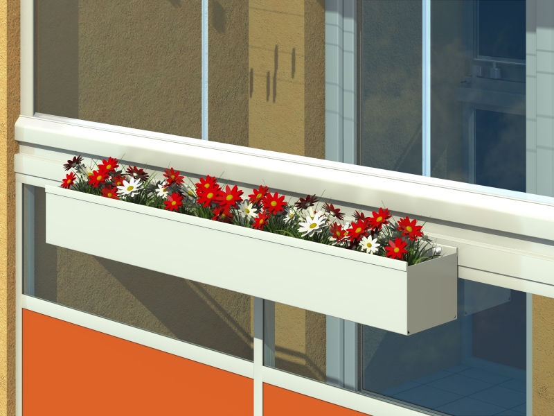 Flower Pot Rack A flower pot rack made of aluminium sheet can be attached to the aluminium railing. Dimensions and colour schemes are entirely up to the customer’s individual requirements.
